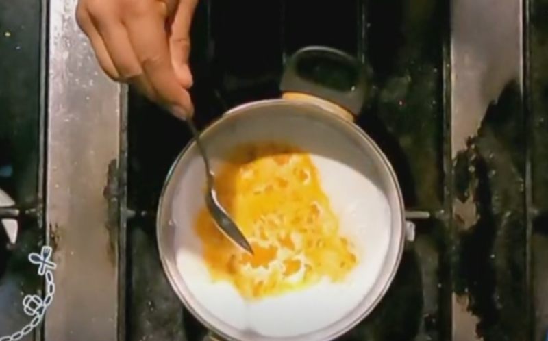 - 냄비에 우유를 넣는다.