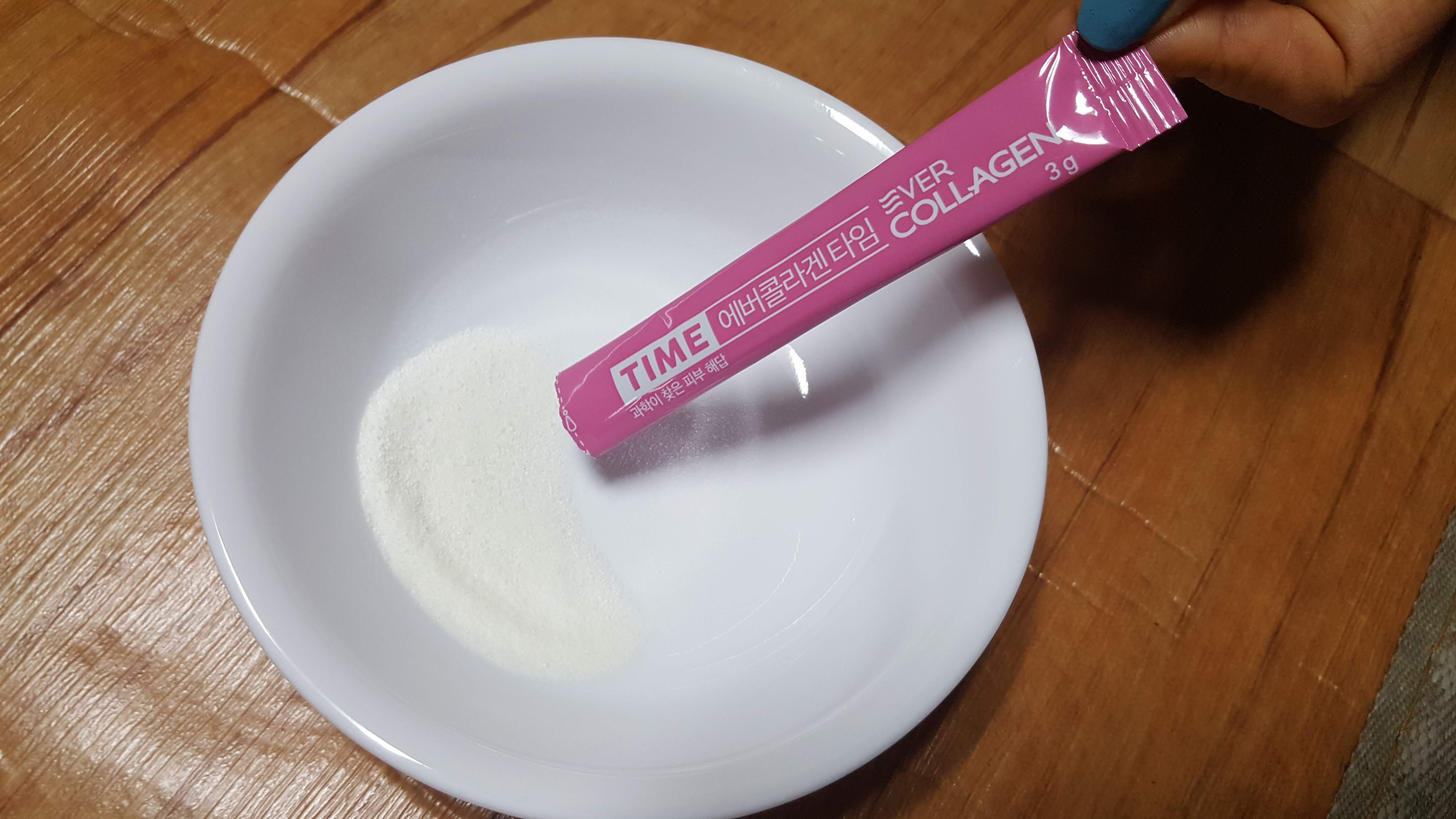 색은 하얀색인데 사진보다 더 하얀색이고 과립형으로 되어 있어 물 없이도 그냥 먹을 수 있는 것도 장점이다.