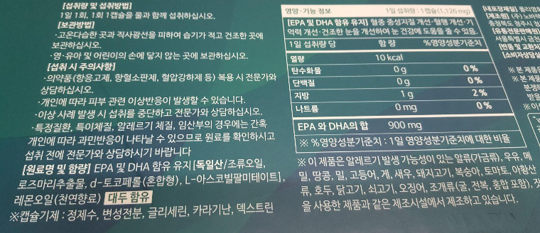 나처럼 비위가 약한 사람들이 고려해볼만한 기호의 문제인 것이지 성분이 더 좋다거나 하지 않다. 오히려 생선오일에 거부반응이 없는 사람이나 견딜수 있으면 생선오일 오메가 3가 함량 성분면에서 더 낫다고 할수 있다.
