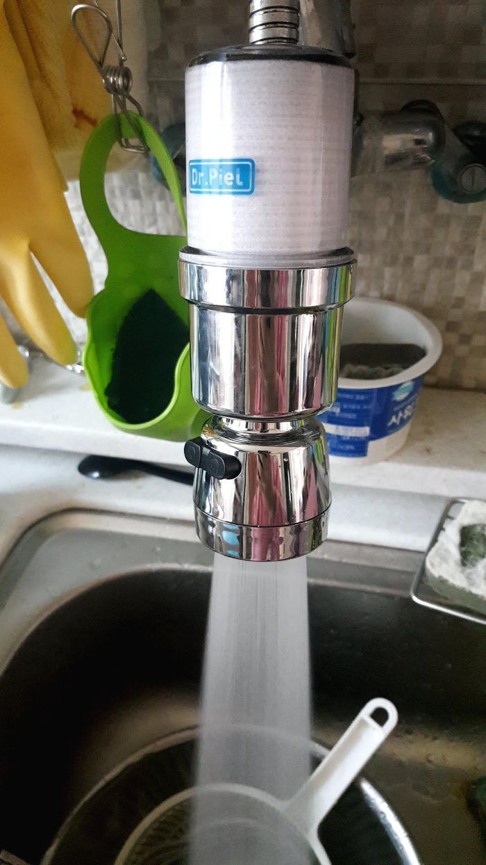 NSF,RoHS, 한국수도연구원등에서 안정성을 인정받은 활성탄소 2중필터인데 특허 받은 제품이라고 한다. 절수가 된다고 하는데 절수는 모르겠고 수압 상승은 확실하다.