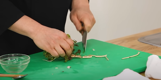 - 냉이는 흙을 제거한 후 깨끗이 씻어 3cm 크기로 자른다.