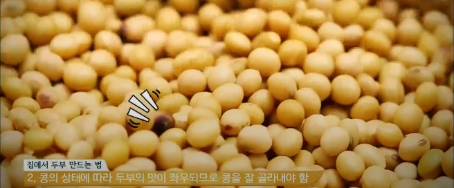 * 콩을 차가운 물에 담그는 이유는 미지근한 물에 콩을 불리면 단백질 성분이 바뀌면서 변하게 된다.