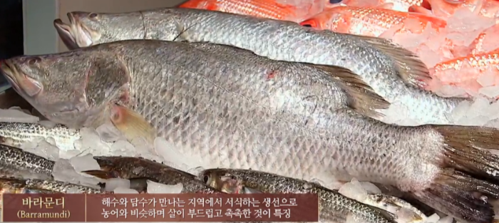 • 살의 특성: 바라문디의 살은 흰색이며, 부드러우면서도 쫀쫀한 식감을 가진다. 대구보다 단단한 질감이 있으며 튀기거나 굽더라도 잘 부서지지 않아 요리에 적합하다.