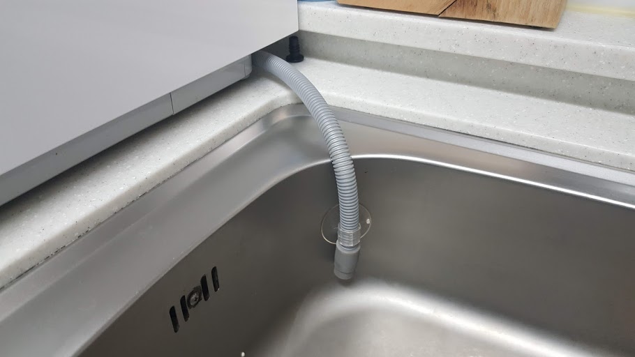 물 빠지는 배수구도 바로 싱크대 옆으로 깔끔하게 처리되어 있고 타공도 최소한으로 깔끔하게 해주고 갑니다. 수도세는 기존 설거지할 때 보다 적게 나온다고 합니다. 전기 요금도 기존 사용요금이랑 별 차이가 나지 않더라고요.