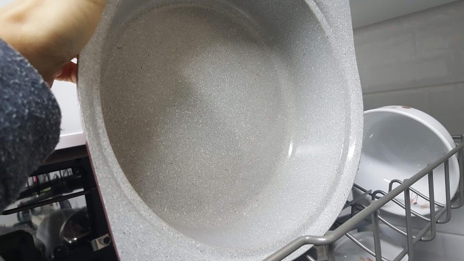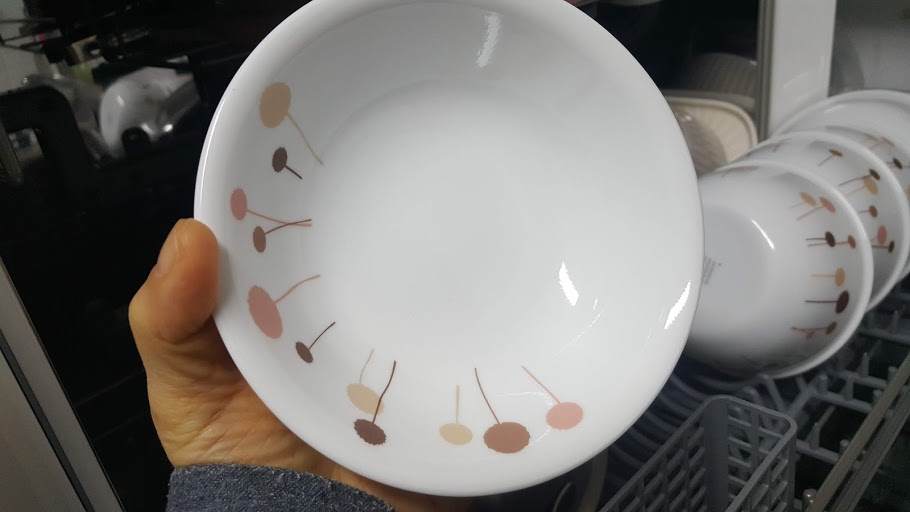 사기그릇도 이렇게 깨끗하게 세척이 되고 물기도 하나 없이 나옵니다. 손 안 대고 이런 깨끗한 접시를 보게 되니 아주 기분이 좋아요.