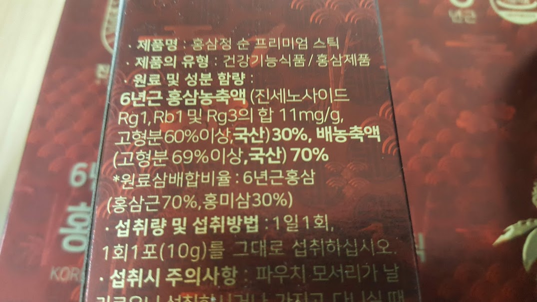 기존의 홍삼스틱을 먹을때 물 같은 것이 스틱 하나는 먹은 느낌도 나지않아 이런 스틱은 10개도 넘게 먹을 수 있을 것 같은 기분인데 이 진생가는 확실히 달랐다.