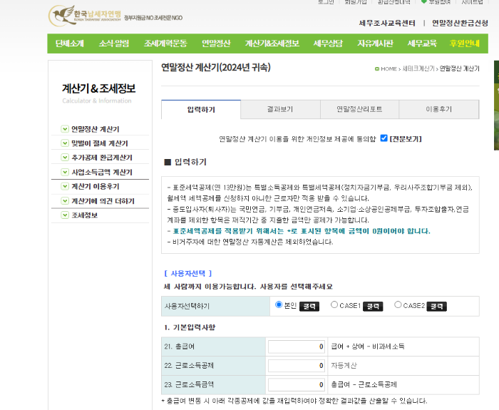 한국납세자연맹의 계산기는 상세한 설명과 함께 제공되어 초보자도 쉽게 이용할 수 있다.
