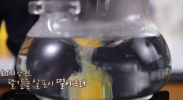 ✔️ 소용돌이 물을 만든 후 계란을 넣어보자.