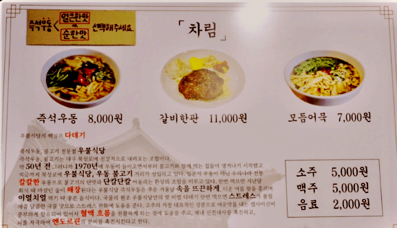 우불식당 인기 메뉴