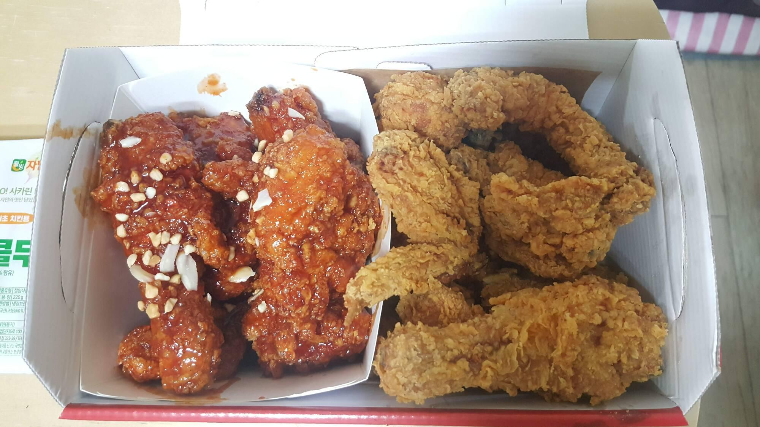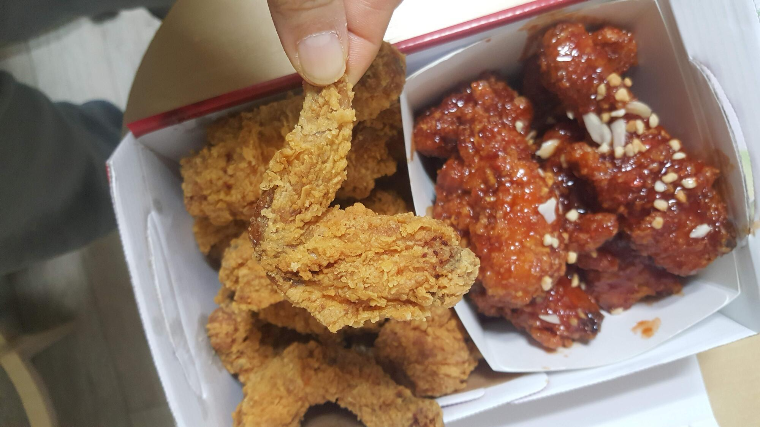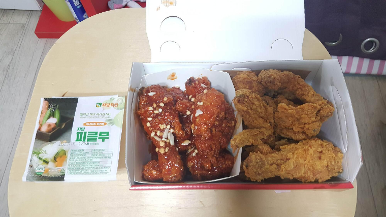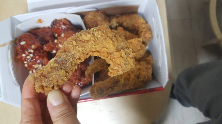 대체적으로 닭 조각들이 그게 넣어져 있어서 그런지 양이 많은 느낌은 아닌데 한 마리 온전히 들어있는 느낌이 들고 정말 간만에 먹는 무난한 통닭이다.