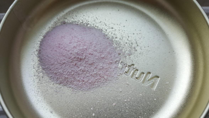 스틱을 오픈해보면 분홍색의 가루가 나와서 의외였는데 자몽맛입니다. 자몽분말 이외에도 블루베리, 라즈베리, 세븐베리농축 분말이 들어 함유되어 있어요.
