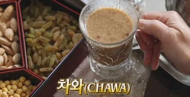 차와는 한국의 쌍화차와 비슷한 느낌의 차로 생강, 블랙 티, 펜넬, 시나몬 카다멈, 황색설탕을 넣고 10분 정도 끊여서 체에 걸어낸 후 호두를 넣으면 완성된다.