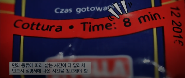 2. 알덴테’ 상태를 목표로 하는데, 이는 한 번 씹었을 때 약간의 단단함이 남아있는 정도이다 알덴테로 면을 삶으려면 포장지 요리 시간에서 2분을 빼면 된다. 그 시간이 면 개발자들이 수많은 테스트를 거친 결과이다.