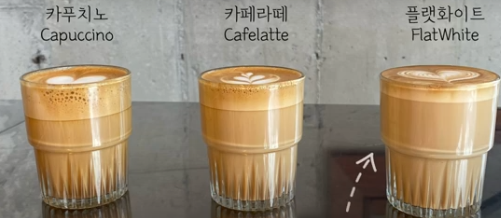 - 부드러운 질감: 라떼보다 우유 양이 적고, 크림 같은 텍스처가 더 강조된다.