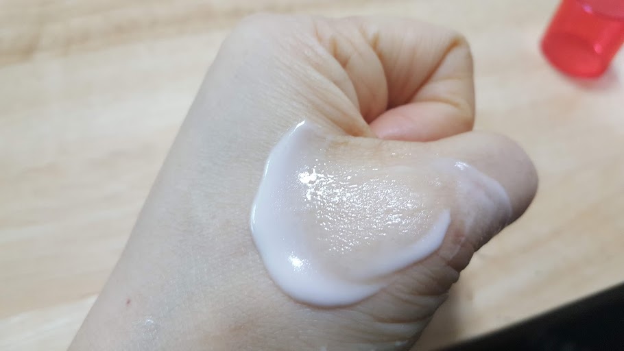 색깔은 약간의 분홍빛이 있고 향도 약간 있어요. 선크림이 아니라 선세럼이라 부르는 이유를 바로 알 수 있습니다. 진정 세럼 같은 묽은 제형으로 전혀 선크림 같은 느낌이 없습니다.