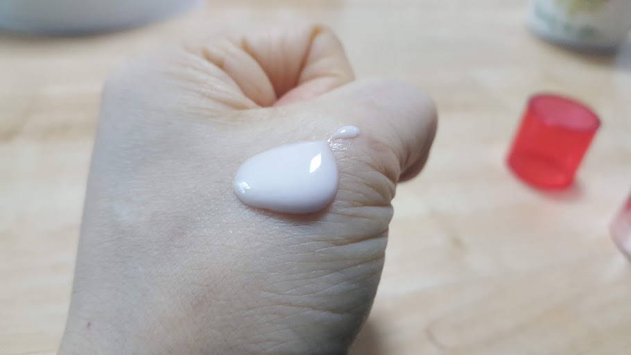 색깔은 약간의 분홍빛이 있고 향도 약간 있어요. 선크림이 아니라 선세럼이라 부르는 이유를 바로 알 수 있습니다. 진정 세럼 같은 묽은 제형으로 전혀 선크림 같은 느낌이 없습니다.